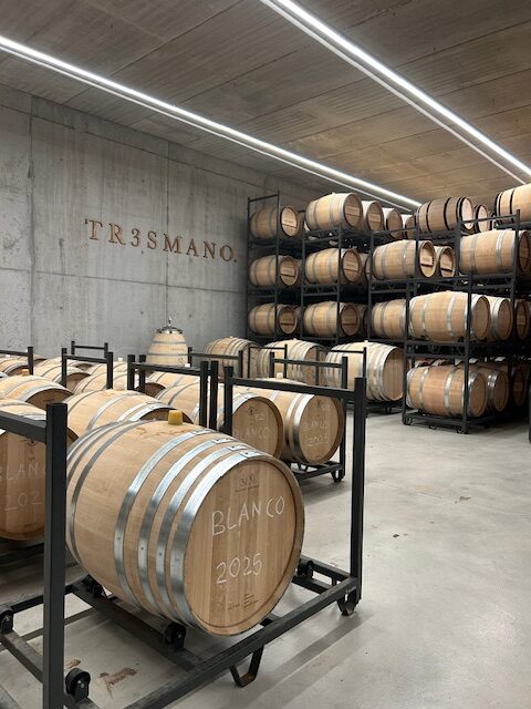 La bodega Tr3smano, inicia el recorrido de la primera jornada. Escondida y a “trasmano” del centro de Padilla de Duero, abre sus puertas un espacio moderno y vanguardista.