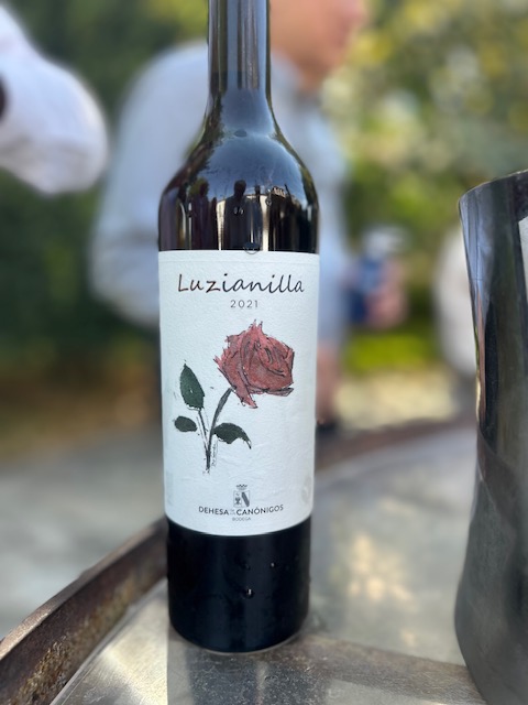 La cata prevista se compone de los dos vinos más representativos de la Bodega: Dehesa de los Canónigos y Solideo. Pero, pese a que se nos había anunciado que el Clarete de Guarda “Luzianilla” ya estaba agotado, oh! Sorpresa!, María Luz, la madre del que toma el nombre este vino, tiene la gentileza de ofrecernos dos botellas de su guarda particular. Ultimas muestras de un vino elaborado en su honor, con una etiqueta de una acuarela de Paco Somoza que refleja la pasión de Mari Luz por las rosas. Un clarete, que recupera los orígenes del rosado en la Ribera del Duero y elaborado en honor a ella.