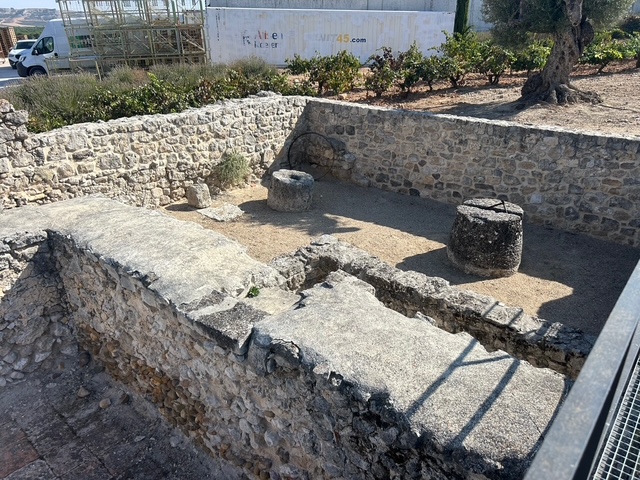 El recorrido nos lleva a un antiguo lagar del siglo XVIII, hoy en ruinas, pero aún digno. Es un vestigio de la tradición artesanal que dio forma a esta tierra. La piedra desgastada, el silencio del lugar, y el contraste con la bodega moderna que lo abraza, nos hablan de una convivencia entre lo que fue y lo que será.