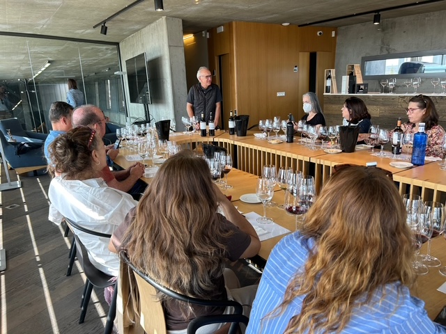 Pedro Aibar se une a nuestro grupo en el tramo final. La bodega está en marcha y el ritmo es frenético, pero se toma un momento para compartir. Nos habla de los comienzos, de cómo cada socio aportó lo mejor de sí: “Uno el dinero, otro la experiencia, y yo… el trabajo”. Lo dice con humildad, pero también con orgullo. En Castilla y León, el trabajo no se presume, se honra.